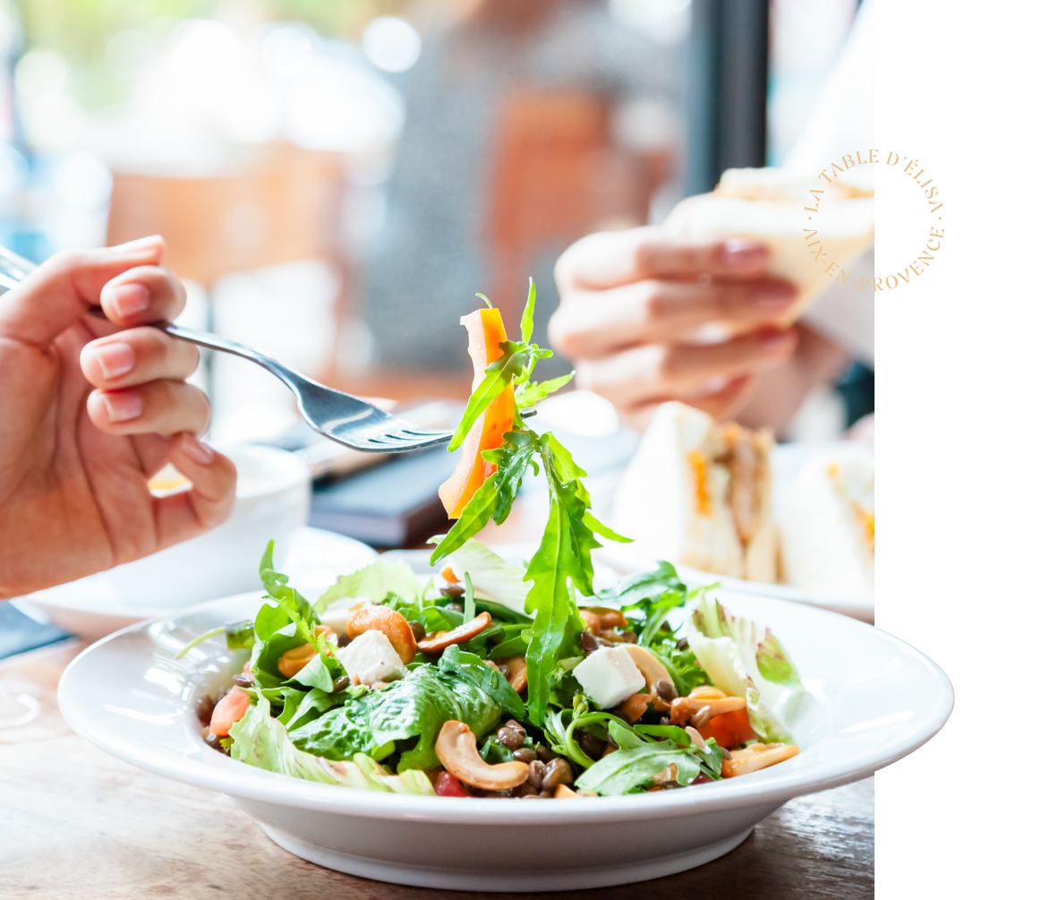 La Table d’Élisa, c’est la promesse d’une dégustation réussie grâce à l’utilisation d’ingrédients frais et locaux pour vous offrir une cuisine savoureuse. Traditionnel ou gourmand, c’est le fait-maison qui prime dans notre établissement à Aix-en-Provence. Nous vous proposons une carte qui respecte la saisonnalité avec des choix végétariens et nous vous présentons des repas à thèmes une fois par mois pour vous faire découvrir de nouvelles saveurs authentiques.